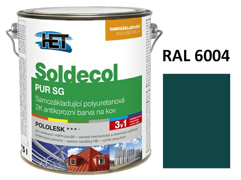 Dvousložková polyuretanová antikorozní barva SOLDECOL PUR SG je určena zejména k nátěrům ocelových konstrukcí, zemědělské, manipulační, dopravní a skladové techniky, klempířských prvků, stožárů, střešních plechů, přepravních a skladových kontejnerů apod.). Jde o jednovrstvý materiál typu 2v1 (tzv. „jednošichtovku“). Pro zpracování je nutné tužidlo do polyuretanových 2K nátěrových hmot SOLDECOL PUR HARDENER, které se dodává samostatně.